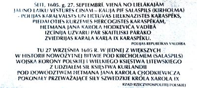 Ale dla nas w okolicach Rygi w br. najciekawszym miejscem będzie, odległe od niej o 18 km Salaspils, znane w Polsce przede wszystkim jako Kircholm, miejsce wielkiej, zwycięskiej bitwy stoczonej 27 września 1605 roku przez wojska Korony Polskiej i W. Ks. Litewskiego oraz Księstwa Kurlandii, pod wodzą hetmana Jana Karola Chodkiewicza, w której rozgromiły wojska szwedzkiego króla Karola IX. O tym miejscu też pisałem kilka lat temu i tekst ten nadal można przeczytać. Ale w br. obchodzona w nim będzie uroczyście 420 rocznica tej bitwy, ze specjalnym programem.