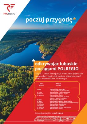 Lubuski zakład POLREGIO wraz z Urzędem Marszałkowskim Województwa Lubuskiego zachęcają do udziału w siódmej już akcji poznawania atrakcji regionu. W ramach oferty turystycznej „Poczuj przygodę, odkrywając lubuskie pociągami POLREGIO” można się wybrać na 11 wycieczek, organizowanych od maja do grudnia tego roku.