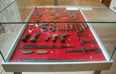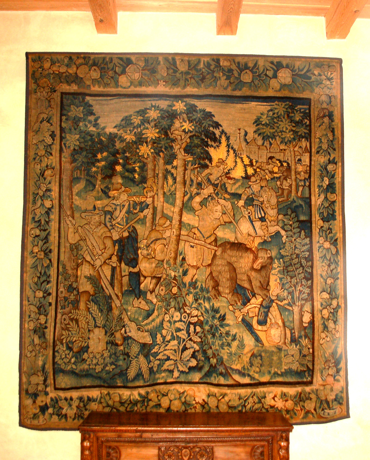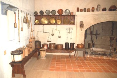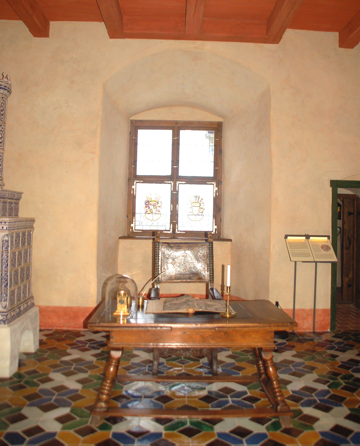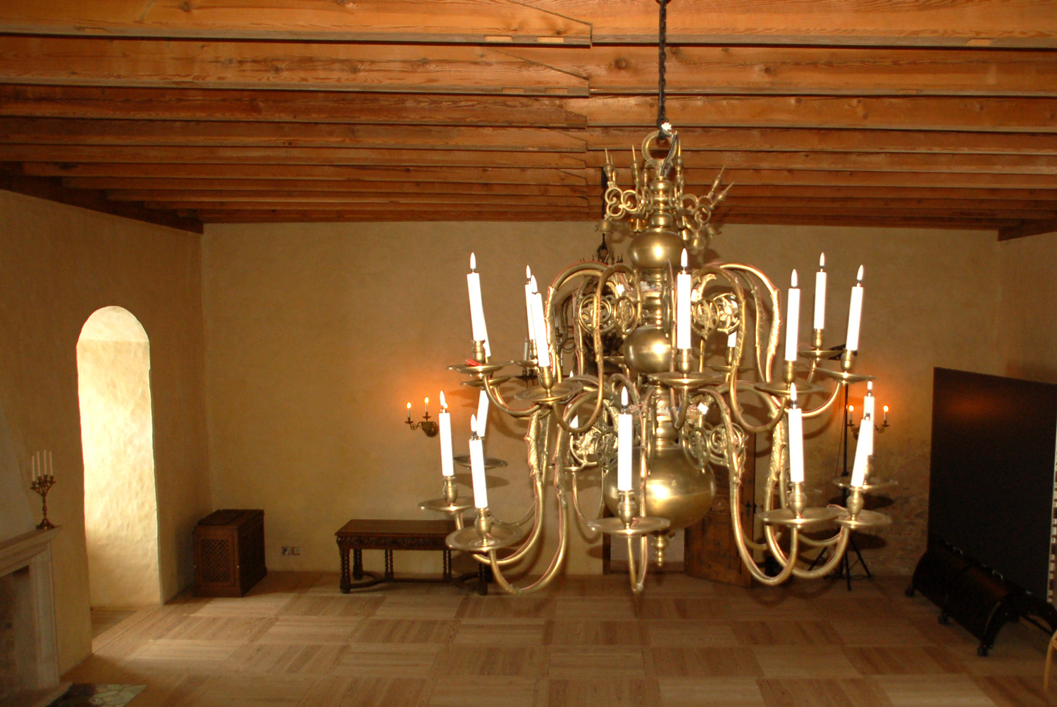 W piwnicach są kamienne kule armatnie, a w gablotach stara broń oraz różne detale z wykopalisk archeologicznych zachowane z przeszłości w imponującej liczbie 5,5 tys. Na wyższych poziomach – zamek jest piętrowy z poddaszami oraz oknami w dachach pokrytych ceglaną dachówką – stare meble, gobeliny, piękne piece kaflowe, każdy inny w poszczególnych salach, obrazy, rzeźby, replika średniowiecznej zbroi rycerskiej, ceramika artystyczna itp. Niewielką, ale ciekawą jest kolekcja dawnych strojów dworskich. Zaś na wałach ziemnych otaczających zamek stoją dwie pary średniowiecznych armat jaskrawo ocinających się na tle pokrywającego je śniegu.