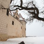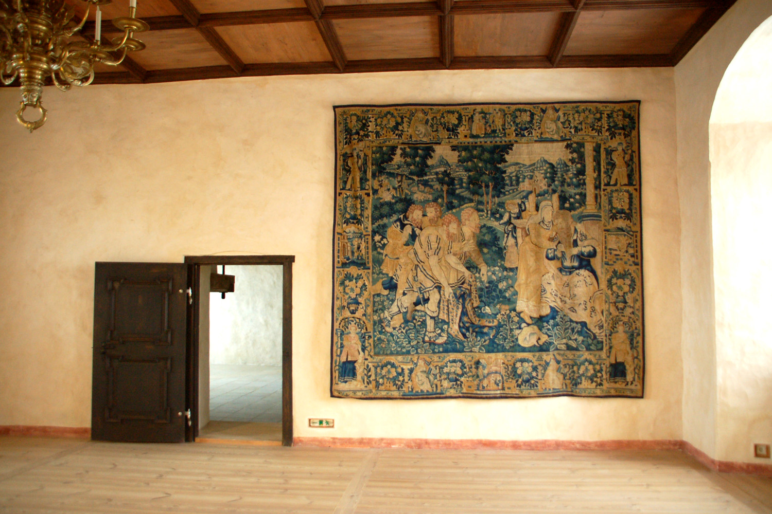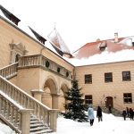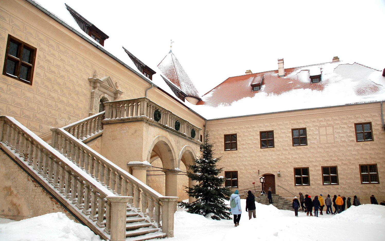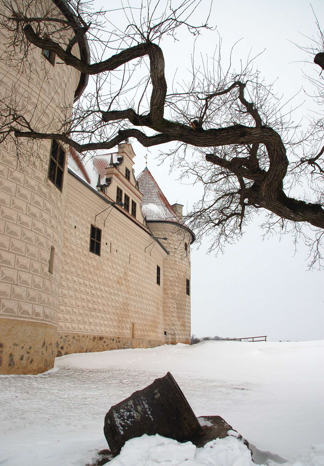 Żydzi, zamordowani w lipcu tegoż oku w pobliskim lesie, stanowili w latach międzywojennych większość tutejszych mieszkańców. Zamek został jednak po wojnie częściowo odbudowany. Dawna średniowieczna twierdza pozostała zakonserwowaną, ale prezentującą się efektownie, zwłaszcza na tle zimowego pejzażu, w którym ją oglądam, trwałą ruiną. Natomiast dawna książęca nowa część zamku stała się jedynym na Łotwie odrestaurowanym pałacem w stylu manierystycznym. W jej 28 salach urządzono muzeum, w którym oglądam ekspozycję wnętrz, historyczne i dzieł sztuki oraz rzemiosła artystycznego.