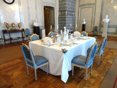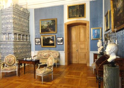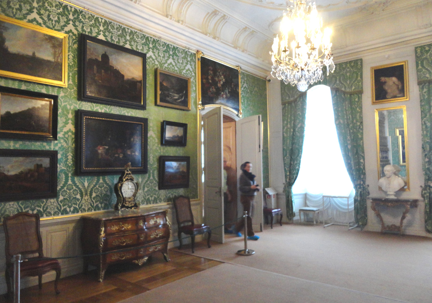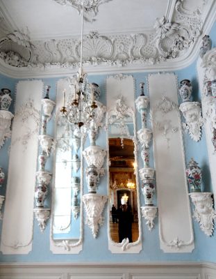 Jednym z najbardziej efektowych pomieszczeń stworzonych przez J. Grafa jest Owalny Gabinet Porcelanowy, z 45 wazami na ścianach, jednak nie na błękitnym, lecz seledynowym tle. Po przeciwległej stronie Białej Sali znajdują się trzy niewielkie pokoje, wśród nich Gabinet Lustrzany, przeznaczone na odpoczynek w trakcie balów. Nie zamierzam oczywiście opisywać wszystkich pomieszczeń. Trudno jednak pominąć cały ciąg Apartamentów Księcia. Znajdują się one w amfiladzie, składają z 20 pomieszczeń, w tym również kilku sal paradnych, sypialni, biblioteki i bilardowej.