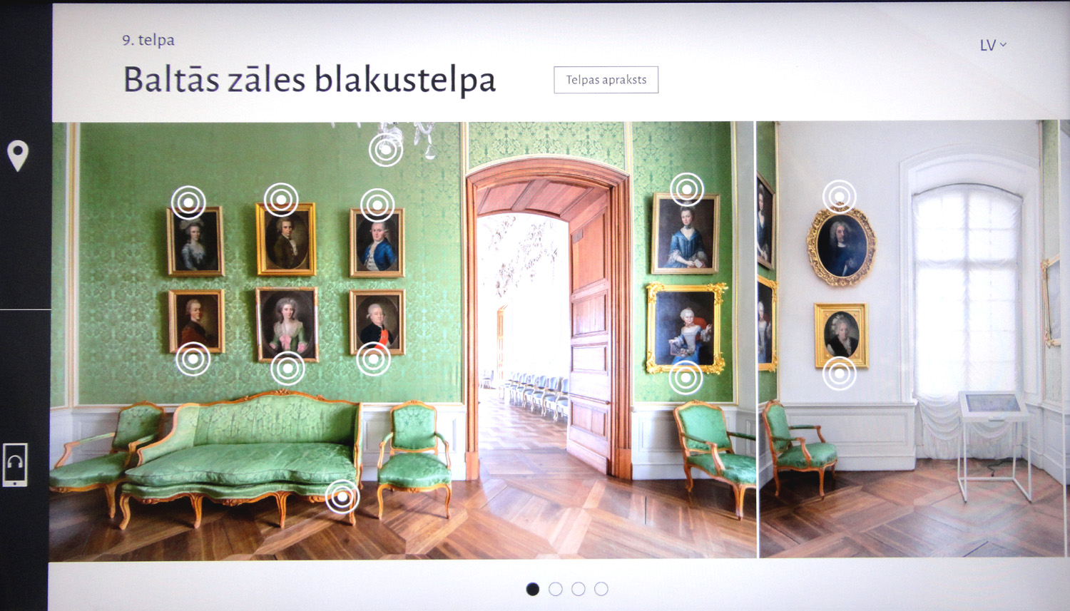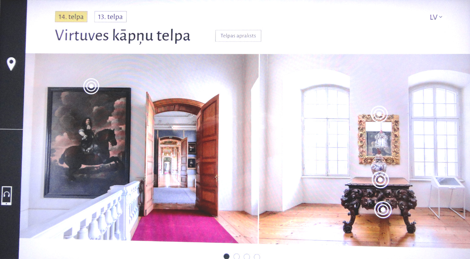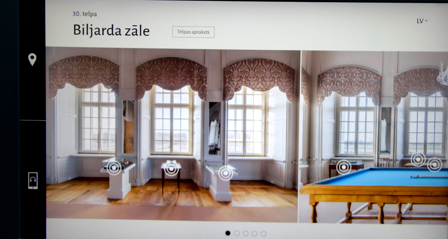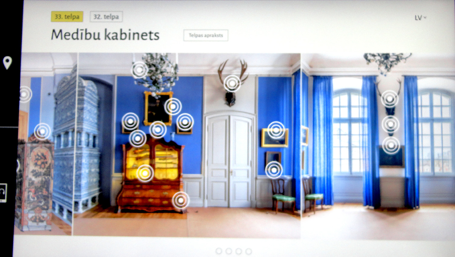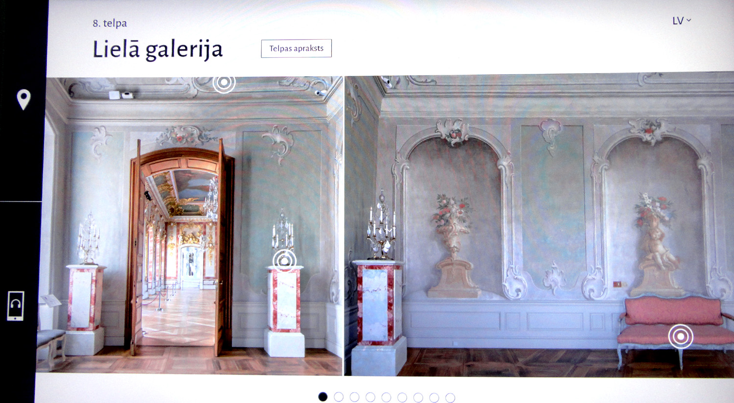 Podobnie „Pokoju Zubowych” wyposażonego w meble i inne sprzęty z czasów tych posiadaczy pałacu po 1795 roku. Oczywiście również ze zdobionym kobaltem ozdobnym piecem, obitymi jedwabiem ścianami z obrazami, meblami itp. Jedną z „perełek” jest Pokój Róż, w którym chyba najwyraźniej widać styl niemieckiego rokoko. Z alegorycznym malowidłem stropowym „Triumf Flory”, girlandami stiukowych róż na ścianach, a całość oczywiście w tonacji różowej. Sąsiadują z nim salony: „Malarstwa Niderlandzkiego” i „Władcy” z portretami przedstawicieli rodu Bironów i portrety ważnych władców w historii Księstwa Kurlandii-Zemgalii.