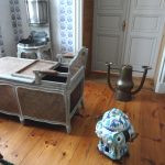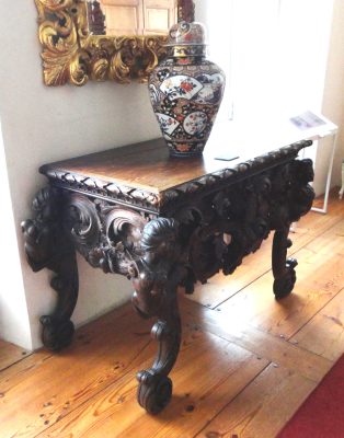 Uwagę zwraca też kilka fajansowych waz i figurek z manufaktury działającej w XVIII w. w estońskim Tallinie. Cały zespół pałacowy zajmuje 85 ha i składa się z 16 budynków. Są wśród nich też stajnie zaprojektowane przez nadwornego architekta księcia, Seweryna Jensena. Mieściły one 66 koni. Obok nich zaś wozownia.
