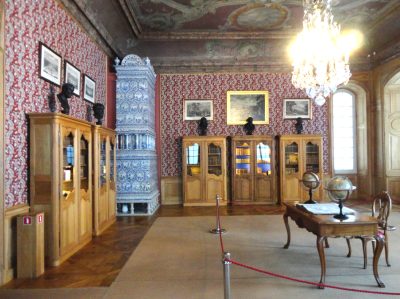 Na suficie sypialni księcia zaś alegorią „Wychowanie Amora”. Książęce łoże znajduje się w wysokiej i głębokiej wnęce. Z niszy alkowy wychodzą drzwi do toalety oraz do garderoby. Sąsiedni Gabinet Audiencji Księcia ma na suficie alegorię „Wenus i Adonis”, na ścianach m.in. duży portret księcia oraz jego dobroczyńców: cara Piotra III i carycy Katarzyny II. W pobliżu znajdują się: Salon Włoski z tamtejszym malarstwem i meblami oraz Jadalnia Księcia z długim, owalnym stołem na kilkanaście osób. Jej rewaloryzację zakończono w 1994 roku, ściany pokryte są sztucznym marmurem.
