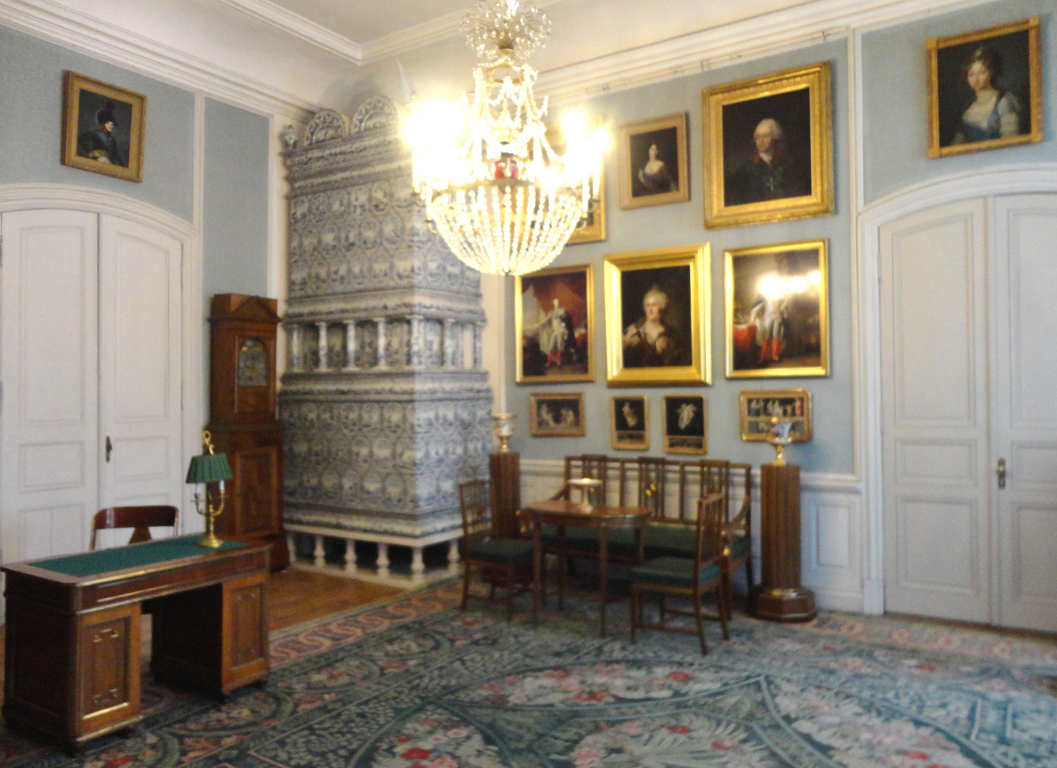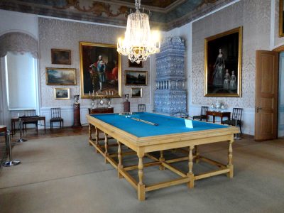 Sufit Sali Bilardowej pokrywa alegoria „Sąd Parysa”, głównym meblem jest oczywiście stół bilardowy będący rekonstrukcją oryginalnego z XVIII w. Mnóstwo obrazów i innych dzieł sztuki, z marmurowym popiersiem cara Aleksandra II znajduje się w Salonie Szuwałowych utrzymanym w kolorze malinowym. Stosunkowo niewielki, ale również bogato ozdobiony i wyposażony w meble i dzieła sztuki oraz z pomieszczeniem z porcelanową, wiszącą na ścianie umywalką, jest Gabinet Roboczy Księcia. Zresztą jeden z dwu. Trochę zaskakują Apartamenty Księżnej w skrzydle zachodnim pałacu.