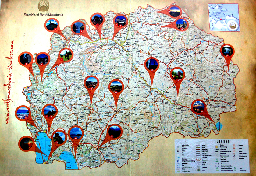 Jest ich sporo. Na dużej mapie Macedonii Północnej, znajdującej się w albumie – broszurze, którą uczestnicy spotkania i prezentacji otrzymali w upominku wraz z innymi publikacjami na temat tego kraju oraz jego głównych, promowanych miejsc, doliczyłem się 21 szczególnie polecanych. Rozrzuconych od północy po południe, ze szczególną koncentracją w części północno zachodniej i zachodnio południowej