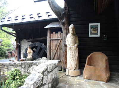 Pierwszy, z kolacją, w Bacówce Biały Jeleń koło Iwkowej. W tym przypadku nazwę bacówka trzeba traktować jako umowną. Jest to bowiem stylowy, nowoczesny hotel. Ze spa, możliwością jazdy konnej i innymi propozycjami. Ozdobiony wieloma rzeźbami w drewnie.