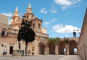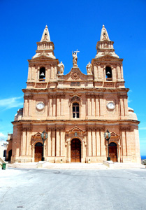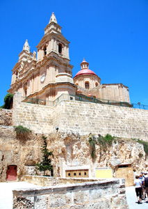 Zbudowano go bowiem w latach 1883 – 1897. Poniżej, na zboczu skały znajduje się Sanktuarium Maryjne, do którego schodzi się po kamiennych schodach. To kolejna świątynia oraz stary klasztor z obszernym prostokątnym dziedzińcem na który wchodzi się przez ozdobną bramę lub od strony wyższej części wzgórza. Ze znajdujących się na tym dziedzińcu od strony morza arkad roztacza się przepiękny widok na zatokę i okoliczne miejscowości – aż po sąsiednie wyspy: Comino i Gozo.