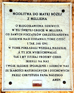 Na bocznych ścianach dziedzińca umieszczono jednolite, duże tablice z białego marmuru, z wykutymi na nich tekstami modlitwy do Matki Bożej z Mellieħy w kilku językach, w tym polskim. Najważniejszym miejscem kultu maryjnego jest tu Grota Madonny. Nazywana The Grotto of Our Lady, ewentualnie of the Madonna. Ta naturalna grota związana jest z chrześcijaństwem od jego zarania.