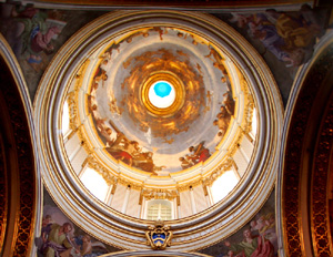 Dzięki temu możemy oglądać w jej apsydzie wspaniałą polichromię Mattia Pretiego „Katastrofa statku św. Pawła”. Wnętrze świątyni robi mocne wrażenie. Zarówno bogate zdobnictwo nawy głównej z pięknymi freskami na sklepieniu oraz w kopule, okna w której rozświetlają katedrę. Jak i kaplice, ołtarze, ambona, obrazy i rzeźby. A przede wszystkim posadzka wyłożona wielobarwnymi – inkrustacje w marmurze – płytami nagrobnymi z herbami, imionami i inskrypcjami upamiętniającymi pochowanych pod nimi biskupów i arystokratów.