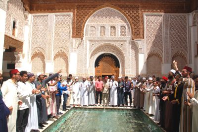 Fragmenty mediny (Starówki) i suków (bazarów). Pałac Bahia. Przepięknie niedawno odrestaurowaną medresę (muzułmańskie seminarium duchowne) Alego ibn Jusufa z XII wieku. Plac Cudów – Dżami al-Fna (Jemaa el Fna) i pobliski, z najsłynniejszym tutejszym minaretem o kształcie wysokiej wieży ponad 70 m. wysokości na planie kwadratu, meczet Koutoubia (Księgarzy). W Marrakeszu „zaliczyliśmy” też hammam – łaźnię marokańską (Les Bains du Lotus).