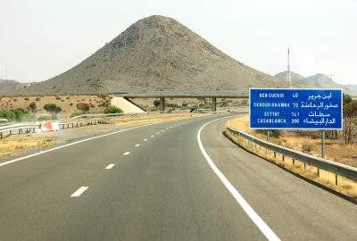 Dodam, że w Maroku jest ich mnóstwo, nowoczesnych, blokujących w szczycie ruch uliczny. Na autostradzie w godzinach poranno–przedpołudniowych liczonych jednak w setkach a nie tysiącach. Dosyć rzadkimi samochodami ciężarowymi, cysternami i autobusami oraz autokarami. Tych ostatnich na całej trasie, w obie strony, naliczyłem… 13. Jak na szczyt letniego sezonu turystycznego, zaskakująco mało. Później pojawiły się pojedyncze domy i ich niewielkie zespoły odsunięte jednak od pasa drogi. Rzadkie, pojedyncze uprawy. A dopiero ok. 30 km przed Casablanką coraz liczniejsze osady.