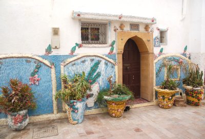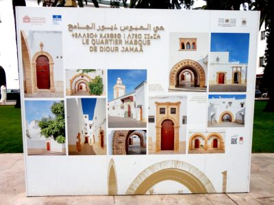 Z zachowanymi jednak synagogami – podobno nadal czynnych jest ponad 30 oraz oryginalną architekturą, bardzo różniącą się od arabskiej. W Rabacie np. z andaluzyjskimi balkonami i elementami dekoracyjnymi. Wyjeżdżając z Maroka Żydzi pozostawiali wiele niepotrzebnych, lub kłopotliwych w drodze przedmiotów, na część których nadal można trafić w sklepach ze starociami i pamiątkami. Podczas mojej pierwszej, najdłuższej podróży po Maroku równo ćwierć wieku temu, jeden z kupców, zresztą bardzo sympatyczny, niemal „wmusił” mi nabycie jednej z nich. Woląc zobaczyć coś nowego, zamiast w wolnym dniu tracić czas na atlantyckiej plaży w Agadirze, pojechałem do odległego od niego o 80 km na wschód „Małego Marrakeszu” – podobnie jak on otoczonego średniowiecznymi murami, 80-tysięcznego miasta Taroudant (Tarudant).