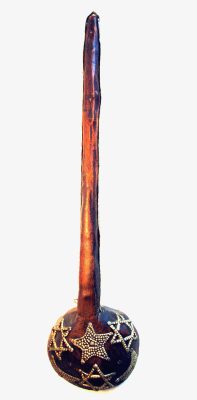 Wśród tysięcy przedmiotów w sklepie ze starociami i pamiątkami była też drewniana łyżka, rodzaj chochli, która zwróciła moją uwagę. Była z poczerniałego ze starości drewna, dosyć topornie wyciosana z niego. Duża, o długości 60 cm, służyła więc do mieszania potraw w dużych garach. Z długim uchwytem obitym z dwu stron chyba cynową, zdobioną taśmą o szerokości niespełna centymetra i wypukłą stroną chochli ozdobioną umieszczonymi na niej, również z takiego samego metalu, ułożonymi z gwoździków trzema gwiazdami Dawida, dwoma półksiężycami i pięcioramienną marokańską gwiazdą. Uległem namowom kupca, stargowałem cenę do 12 $ i obecnie wisi ona u mnie „na swoi miejscu”, czyli w kuchni.