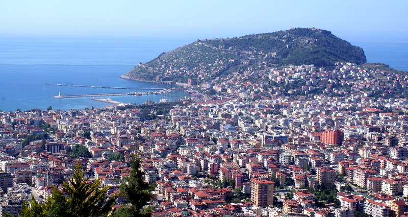 Turystyczna Alanyia, której symbolem jest owoc pomarańczy, powstawała z dużym rozmachem w ciągu ostatnich dwudziestu lat. Miasto najlepiej podziwiać z punktu widokowego na wysokim wzgórzu. Dawne mury obronne wdrapują się zakosami na wzniesienie z widoczną z daleka Czerwoną Wieżą obok portu. Wypływają z niego promy m.in. do tureckiej części Cypru. Tutaj też, wg. legendy, na plaży zwanej obecnie Plażą Kleopatry spotykała z Markiem Aureliuszem piękna królowa Egiptu.
