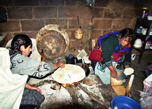 Całą posadzkę pokrywa kilkucentymetrowa warstwa siana, igieł sosnowych i chrustu. Stoi na niej kilkanaście stołów z płonącymi lampkami i świecami. Dookoła na posadzce siedzą w małych grupkach, przy świecach, mężczyźni, ich kobiety i dzieci. Jedzą, popijają mocny alkohol pox pędzony z trzciny cukrowej lub napoje orzeźwiające.
