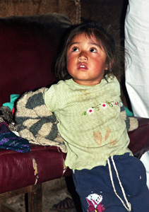 A inna, młoda Indianka bardzo troskliwie chroniła, całkowicie je zasłaniając, niemowlę noszone w chuście na plecach zarówno przed obiektywem fotoaparatu, jak i przed wzrokiem obcych. Dlatego, aby nie zostało ono, zgodnie z tutejszymi wierzeniami, „zauroczone”. Ale kilkuletnie dzieciaki nie podlegają już takiej ochronie. Udało mi się więc zrobić im kilka zdjęć.