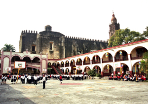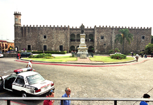 Na mnie, w odróżnieniu od Humboldta, miasto, a zwłaszcza dwie najstarsze jego zabytkowe budowle, zrobiły jednak raczej dosyć ponure wrażenie. Przy centralnym Plaza de Armas – Placu Broni – stoi bowiem ogromny kamienny, szary gmach fortecy konkwistadora Hernána Cortésa zbudowanej na ruinach azteckiej piramidy. Miejsce to zaludnione było bowiem już wcześniej i to co najmniej od początków XII wieku.