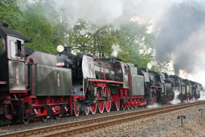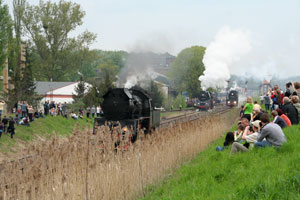 Po części oficjalnej nastąpiła wyczekiwana przez widzów prezentacja najpiękniejszych parowych lokomotyw z Polski, Węgier, Czech i Niemiec.