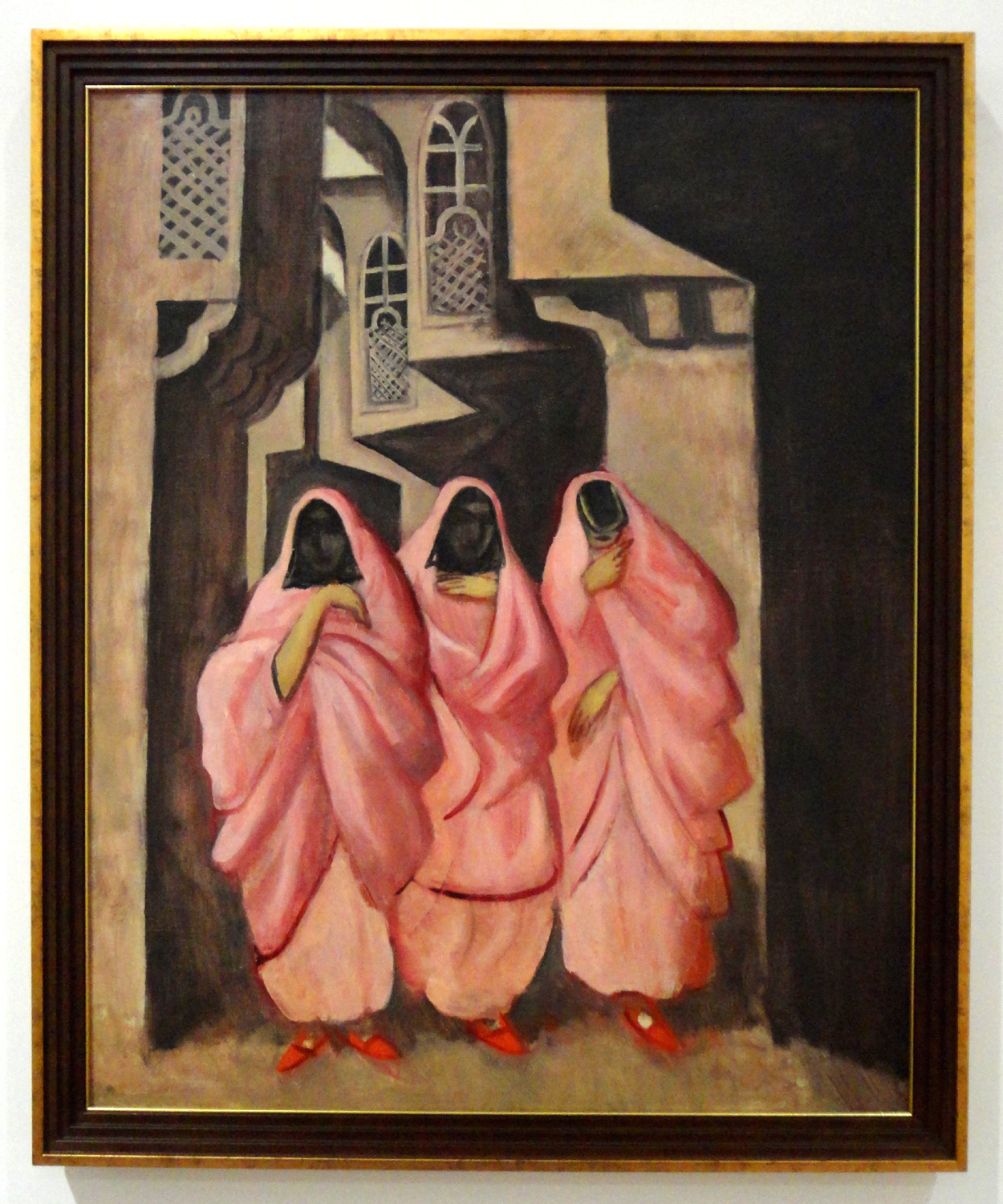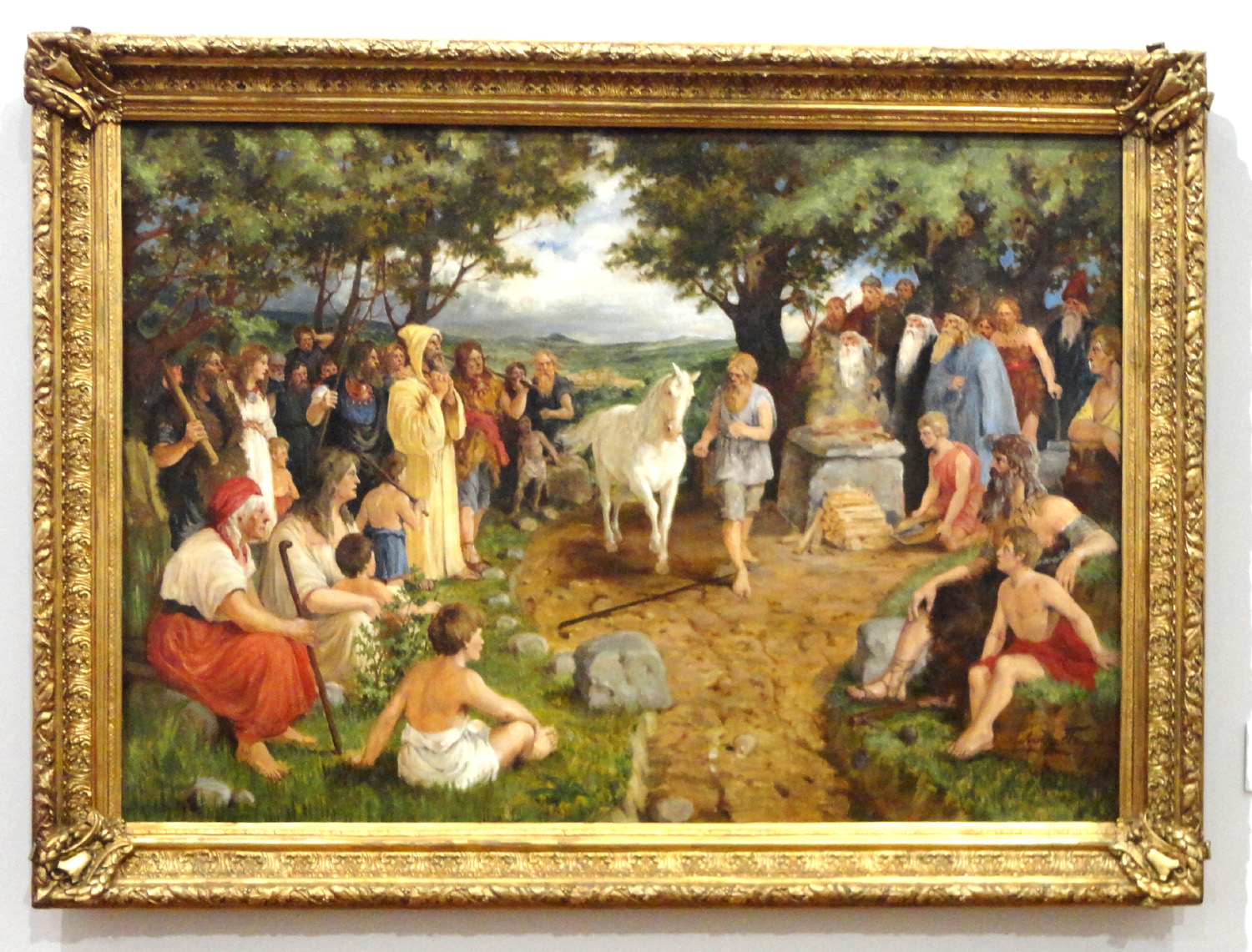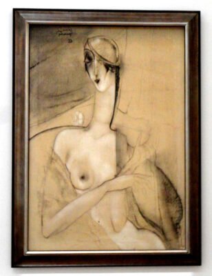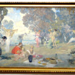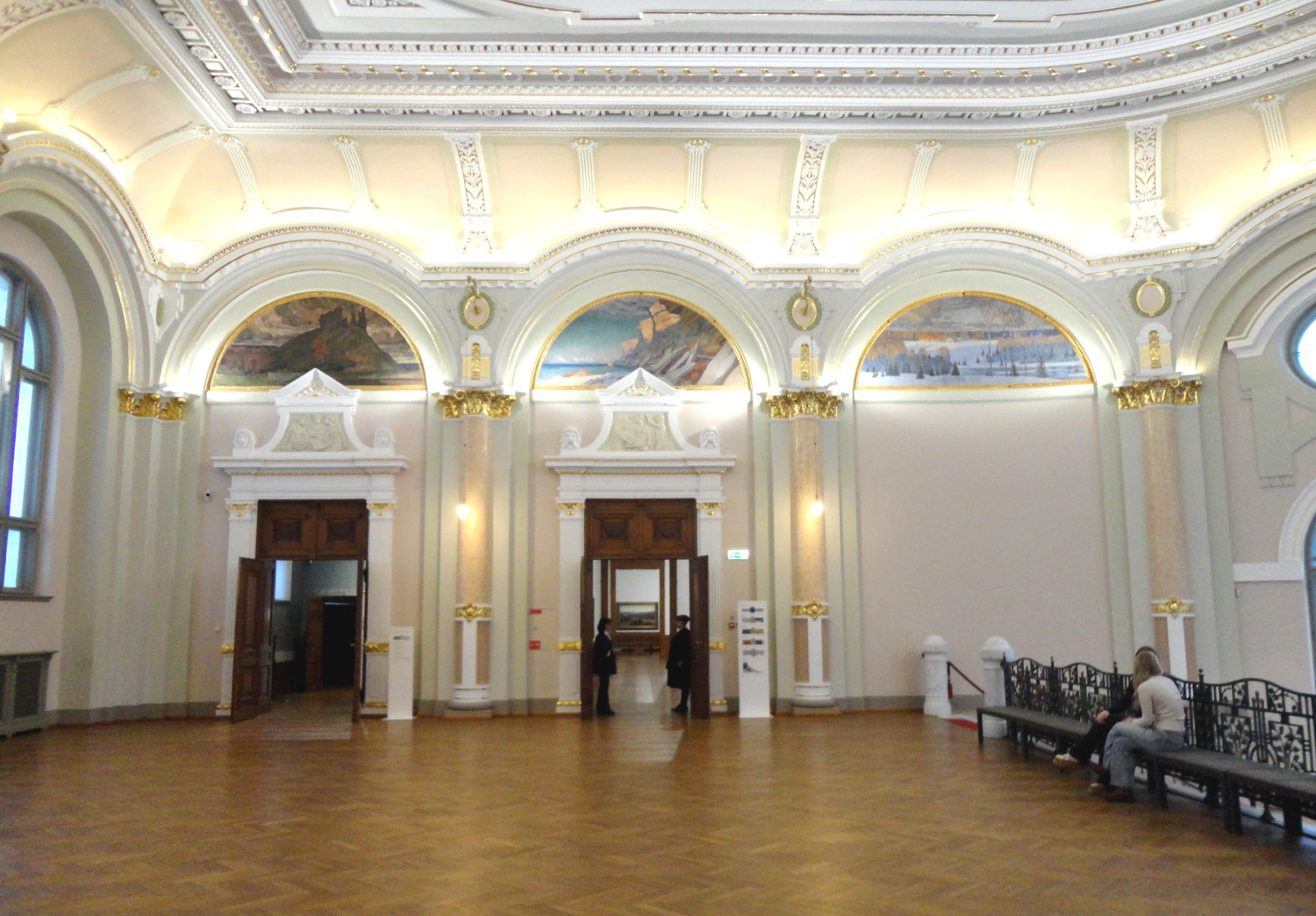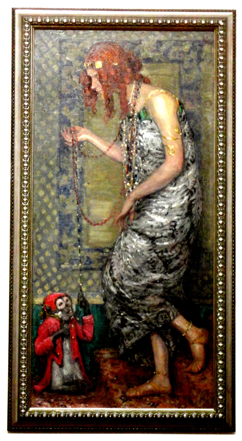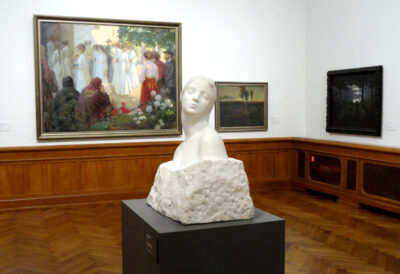 Od przełomu wieków XIX i XX oraz z lat 20 i 30-tych, modnych wówczas kierunków zwłaszcza nad Sekwaną. Zaś w pejzażach artystów rosyjskich, m.in. Isaaka Lewitana (1860–1900) i Archipa Kuindży’ego (1842–1910). Ale to mogą być tylko moje odczucia, nie zaś stwierdzenia historyka sztuki. Jeżeli chodzi o tematykę, to w ekspozycji mnóstwo jest portretów, szczególnie kobiecych, chociaż mnie „nie powalających” artyzmem. Podobało mi się natomiast sporo pejzaży, a także, stosunkowo nielicznych, scen rodzajowych, czy wyjątkowych biblijnych. Z przyjemnością oglądałem m.in. scenę kąpieli Janisa Rozentalsa (1866-1936) nawiązującą chyba do mitu Ledy i Zeusa pod postacią łabędzia.