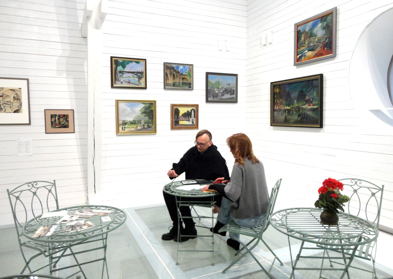 „Skatlogi”, czyli „Okna”, m.in. wystawionej jak w oknie damy w czerwonej sukni w stylu lat 20-tych XX w. przy kawiarnianym stoliku. „Bulvāri” – „Bulwary” z obrazami tłumów na ulicach oraz „Kioski” – „Kioski”, z rysunkami ryskiej architektury oraz poukładanymi ukośnie starymi pismami na temat sztuki. Nigdy mnie nie pociągał „socrealizm” w sztuce, chociaż i w tamtym okresie trafiały się, chociaż rzadko, ciekawsze prace. Wychowany zostałem jednak pod wpływem najlepszej sztuki europejskiej, chociaż tylko częściowo oglądanej w oryginałach.