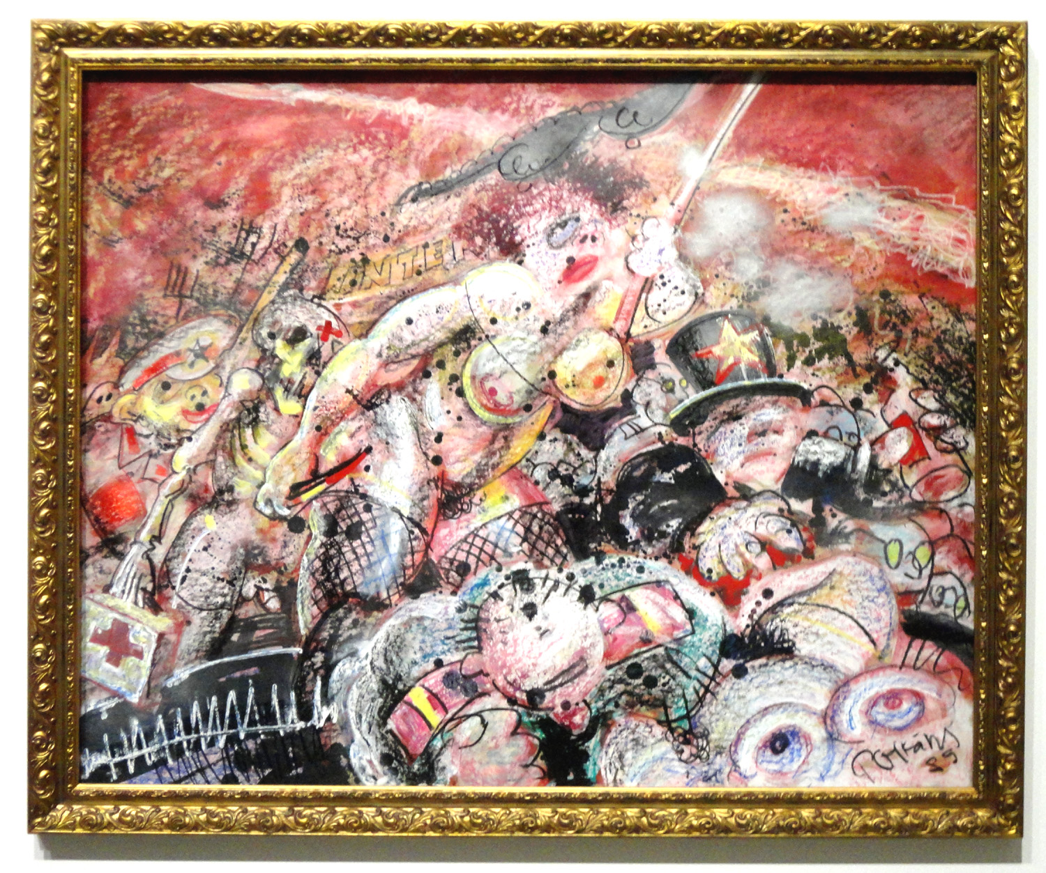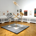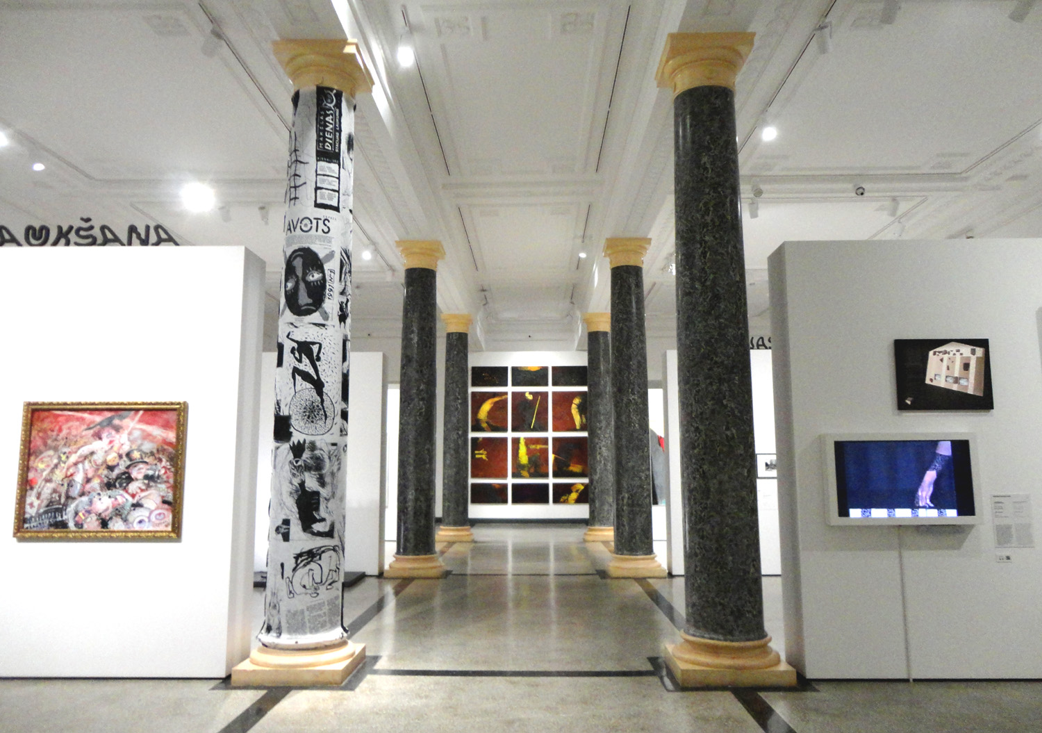Bo kolekcje stałe umieszczone są tak, że im starszy okres sztuki, tym znajduje się wyżej. O czym informują tablice z ich rozmieszczeniem. Najniżej, w rozległych salach i korytarzach, prezentowane są dzieła sztuki pod trochę zaskakującym tytułem ekspozycji: „Cilovēka. Absurdie. Proiekti. Uz zemes”. W wersji angielskiej: „Man’s. Absurd. Proiekts. On garth”. Czyli w tłumaczeniu: „Absurdalne projekty człowieka na Ziemi”. W ogromnym skrócie mieszanina sztuki okresu socrealizmu i tzw. „instalacji”. Z informacjami na ścianach i podłogach korytarzy, a także obrazami w częściach zatytułowanych:
