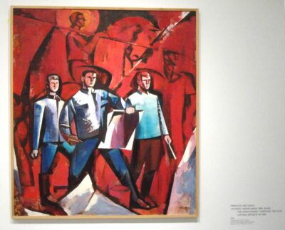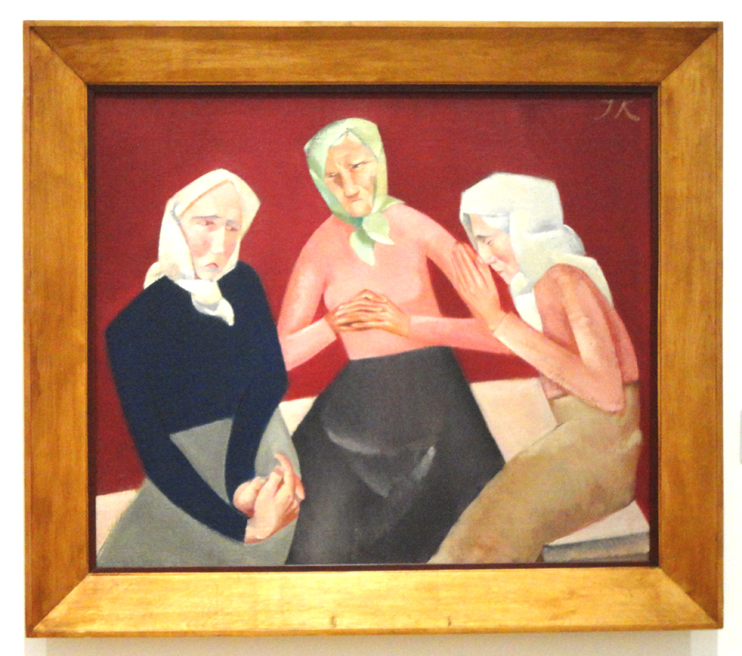 … I wojna światowa przyniosła Łotyszom trudne wyzwania, które zainspirowały silną falę samoświadomości narodowej wśród artystów. Jāzeps Grosvalds jako pierwszy podjął w malarstwie palącą tematykę uchodźców i strzelców. Jēkabs Kazaks, na którego twórczość znacząco wpłynęło współczesne malarstwo francuskie, również zwrócił się ku ukazywaniu dramatycznych wydarzeń historycznych… W pierwszych latach powojennych wielu artystów zainteresowało się nurtami modernizmu, zwłaszcza ekspresjonizmem i fowizmem, ale na wielu z nich największy wpływ miał kubizm”.