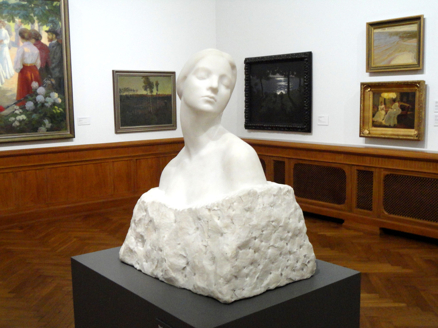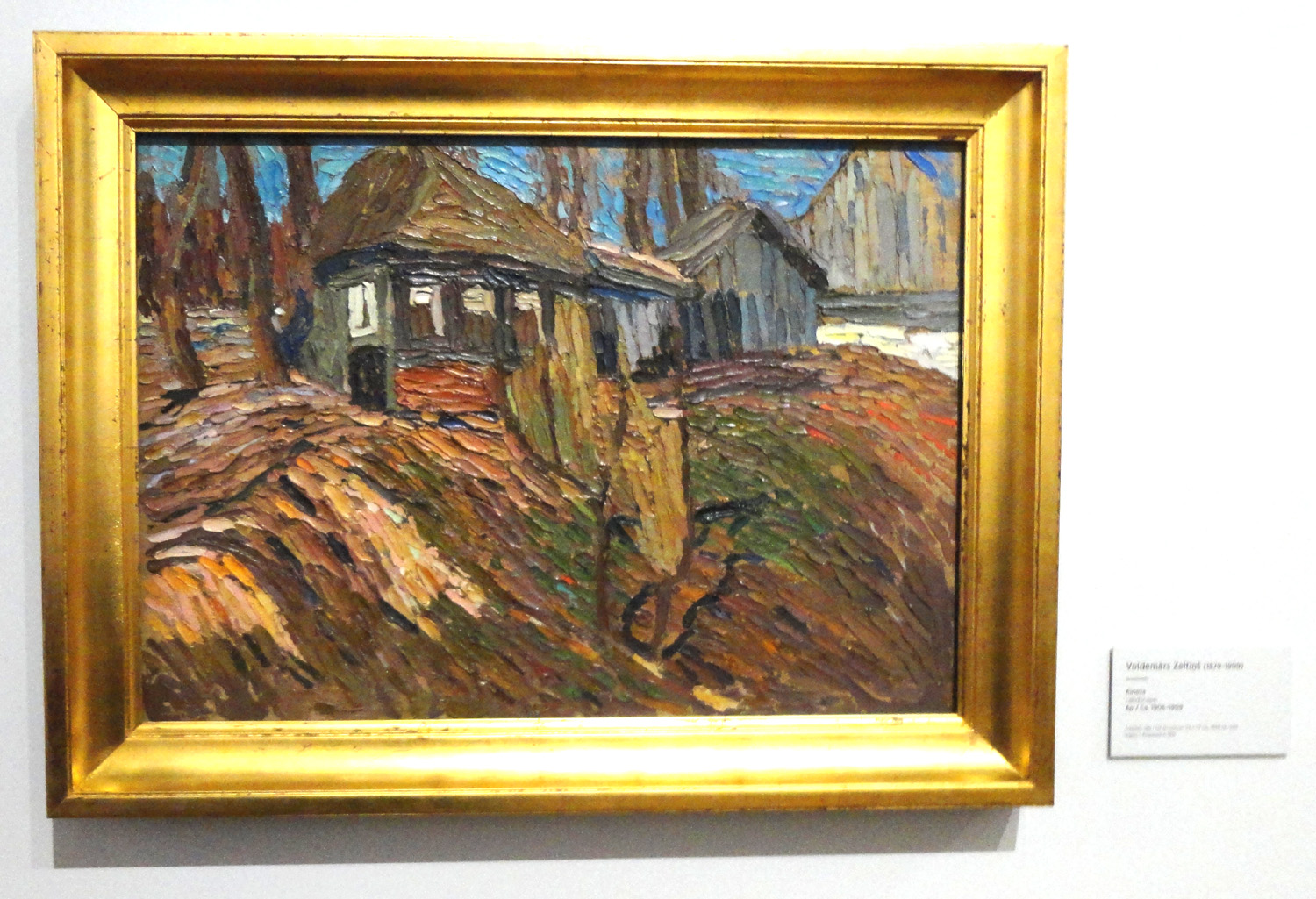 Moją uwagę zwraca znikomy odsetek wśród prezentowanych prac rzeźb. Na ten temat znalazłem taką informację: „Granitowe dzieła Marty Skulme, Emīlsa Melderisa i Teodorsa Zaļkalnsa wyróżniają się na tle rzeźby lat 20. i 30. XX wieku. Szara, surowa, granitowa „Świnia” Zaļkalnsa dzięki swojej monolitycznej formie i lakonicznej ekspresji stała się niezaprzeczalnie symbolem łotewskiej rzeźby kamiennej”. Oczywiście i tę „Świnię” oraz kilka rzeźb znacznie innych w stylu, sfotografowałem i publikuję. Oglądając obrazy zauważam wśród najstarszych wpływy rosyjskiego klasycyzmu.