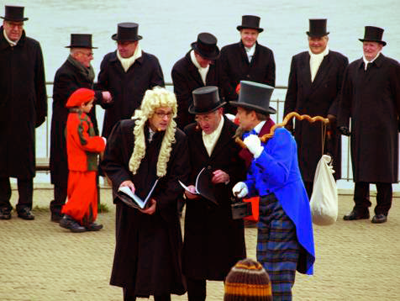 Krawiec sprawdza za pomocą gorącego żelazka stan rzeki – po dziś dzień tradycja ta kultywowana jest z zachowaniem całego aktorskiego ceremoniału, pomimo iż Wezera od dziesięcioleci nie zamarza.