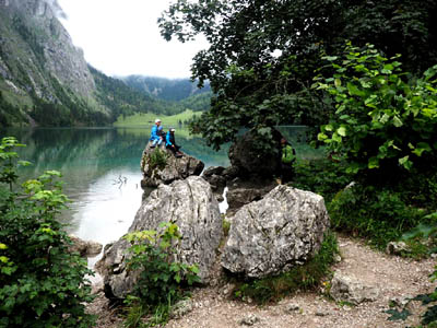 * Spojrzeć z góry na piękny akwen można wyjeżdżając kolejką i podchodząc troszkę szczyt Jenner (1874 m n.p.m.). Roztacza się stamtąd ładny widok na jezioro, imponujący masyw Watzmana i całe morze gór dookoła. Można też wyjechać tylko do stacji pośredniej (1185 m n.p.m.) i powędrować widokowym trawersem aż do schroniska na Gotzenalm (1685 m m n.p.m.) cały czas podziwiając piękne widoki.