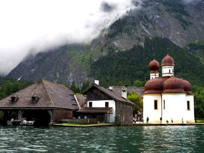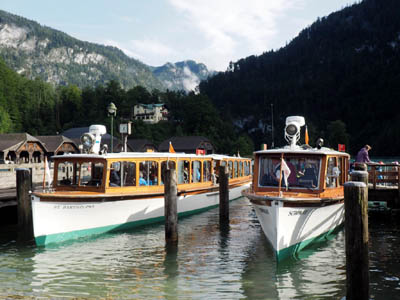 * Wreszcie rejs po jeziorze elektrycznym stateczkiem, czyli to, co wybiera większość przybyszów. Z przystankami u kościółka św. Bartłomieja (Bartholomä), skąd można pójść na wycieczkę pod ścianę Watzmana do Lodowej Kaplicy (Eiskapelle) i z drugim przystankiem w Salet na końcu jeziora, skąd można powędrować do Obersee i wodospadu Röthbach. O tych ciekawych możliwościach napiszę wkrótce osobno.