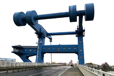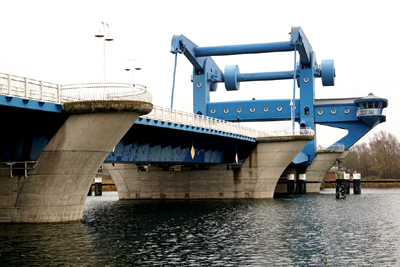 Niebieski most jest zwodzony i otwierany jest co 4 godziny na 30 minut, a podniesienie przęsła otwiera kanał żeglugowy o szerokości ponad 30 m. Długość konstrukcji między przyczółkami wynosi 256 m. Przęsło zwodzone ma 19 m szerokości i 42 m długości.