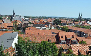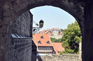 Na wzgórze zamkowe wchodzimy przez łukowe wejście. Najpierw udajemy się na taras widokowy, z którego wydaje się, że Quedlinburg jest miastem o kolorze czerwonym. Z góry oglądamy dachy, które zbudowane są z czerwonej dachówki. Nad nimi unoszą się strzeliste wieże kościołów, na przykład św. Błażeja czy św. Benedykta.