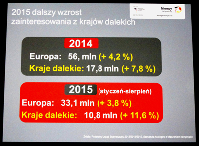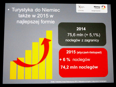 Na konferencji podsumowany został również, chociaż nie ostateczny, gdyż brak jeszcze danych z końca roku, bilans statystyczny 2015 r. w turystyce niemieckiej. Przyjazdów turystów zagranicznych, mierzonych liczbą noclegów w hotelach i motelach powyżej 10 łóżek, było więcej niż w 2014 roku. Tylko do końca listopada o + 6% – 74,2 mln.