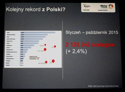 Straciliśmy jednak 10 miejsce w statystyce zagranicznych turystów odwiedzających Niemcy, Polaków wyprzedzili bowiem Chińczycy i Hiszpanie. Ale zamierzenia wobec nas DZT ma ogromne.