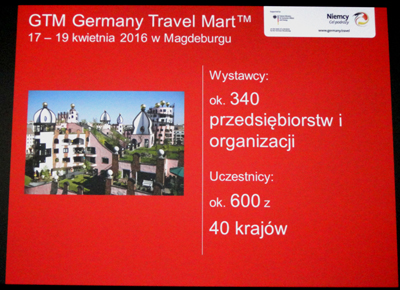 Poinformowano o GTM – Germany Travel Market, który odbędzie się w kwietniu w Magdeburgu z udziałem ok. 340 przedsiębiorstw i organizacji oraz ok. 600 uczestników z 40 krajów.
