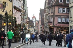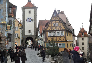 Brama z XIV wieku znajduje się w najlepiej zachowanej części muru broniącego kiedyś Rothenburg przed niepożądanymi gośćmi. Ponownie przechodząc przez bramę znajdziemy się na uliczce prowadzącej wprost na Marktplatz – główny miejski plac z ratuszem składającym się z części gotyckiej z wieżą i renesansowej, dawnymi aptekami, kawiarniami, restauracjami i hotelikami, sklepami z pamiątkami, które przykuwają uwagę nawet najbardziej odpornych na tego typu uroki.