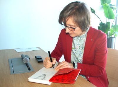 Ponieważ dziennikarze razem z materiałami prasowymi otrzymali też w prezencie książkę prof. Elizy Pieciul – Karmińskiej, z ilustracjami Michaliny Jurczyk: „Żyli długo i szczęśliwie, póki nie umarli. Nieznane baśnie braci Grimm”, po zakończeniu omawiania życia, twórczości i historii publikacji tych baśni w Niemczech oraz w Polsce, autorka ich tłumaczenia podpisywała ją zainteresowanym, czyli chyba wszystkim. Było to więc bardzo udane spotkanie prasowe i z twórczością Braci Grimm. Przy czym odbyło się ono w niezwykłej scenerii: w sali konferencyjnej na 38 piętrze budynku Warsaw Spire, z widokami z góry na skapaną w promieniach słonecznych Warszawę.