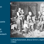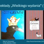 Omówiła dzieje zbioru Baśni i ich pierwsze wydania, pokazała na ilustracjach autorki historii zebranych przez Braci i mnóstwo innych związanych z tym tematem, reprodukcje niektórych książek odnalezionych w Poznaniu i artykułów prasy niemieckiej na ten temat itp. Była to naprawdę solidna dawka wiedzy na ten temat z mnóstwem szczegółów raczej mało, lub w ogóle nieznanych uczestnikom konferencji, np. na temat autocenzury Braci pod kątem obyczajowym czy dostępności dla dzieci. Z usuwaniem niektórych baśni w kolejnych wydaniach ich zbiorów.
