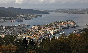 Bergen, drugie pod względem wielkości miasto Norwegii, najpiękniej wygląda ze szczytu Fløyen, jednego z siedmiu sąsiadujących ze sobą wzgórz. Niezapomnianych wrażeń dostarczają też spacery po skansenie czy dzielnicy portowej.