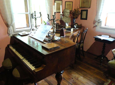 W tym po prawej stronie stoją meble z XVIII – XIX w. oraz m.in. wiedeński fortepian, na którym grywał Jan Matejko – syn nauczyciela muzyki. Oglądać można dziesiątki przedmiotów, wiszące na ścianach obrazy, rodzinne zdjęcia, rysunki i szkice artysty, a także oprawioną w ramki stronicę Nowego Kuriera Polskiego z obszerną informacją o śmierci artysty.