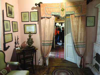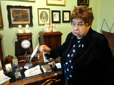 Pokój po lewej strony od wejścia, to dawny gabinet „cioci Stasi” (Stanisławy Serafińskiej) z mnóstwem książek, fotografii, niewielkich popiersi sławnych ludzi, bibelotów i innych pamiątek. Na biurku leży m.in. otwarty, gruby tom jej Wspomnień rodzinnych „Jan Matejko”, a na nim oba 5-złotowe banknoty z portretem – głową autorki.