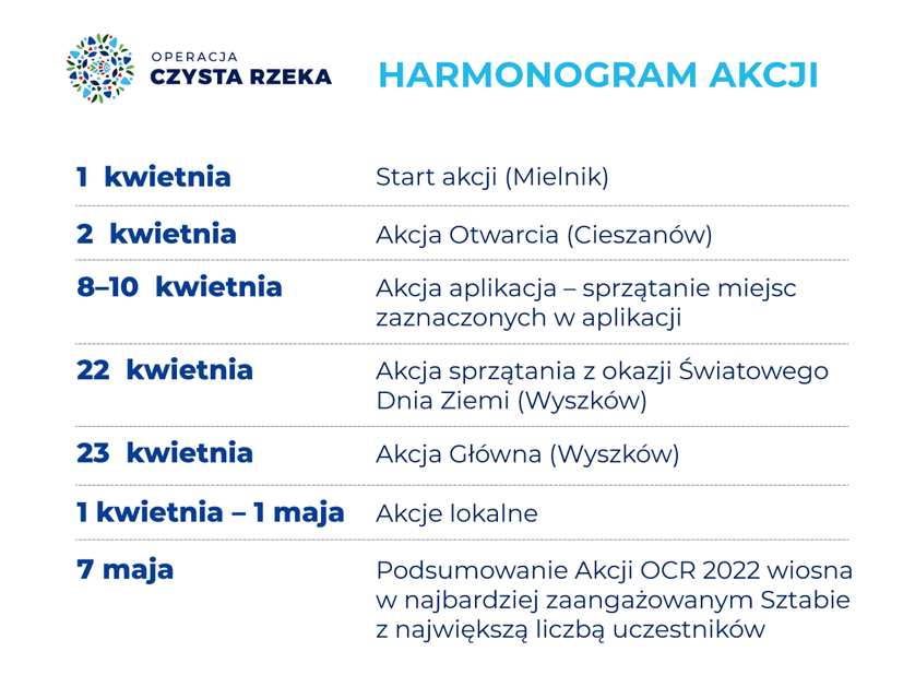 Rejestracja sztabów rozpoczyna się 25 marca. Lokalne akcje sprzątania w plenerze ruszają 1 kwietnia i potrwają do 1 maja. Harmonogram edycji 2022:
