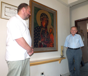 Jestem szczęśliwy, że po wielu latach oczekiwań dane mi było poznać obu księży, że dzięki spotkaniu z nimi mogłem lepiej zrozumieć i poznać wiele problemów związanych z Polakami w Paranie. Mogłem przekonać się jakim poważaniem cieszą się u wiernych w swojej parafii, jak cenieni są przez Polonię. Z naszego spotkania w Kurytybie utkwiły mi w pamięci zwłaszcza dwa obrazy. Pierwszy, jak obaj księża stali w wejściu do kościoła witając wszystkich przychodzących na mszę. Każdemu ściskali prawicę i starali się zamienić choć kilka słów. Druga scena, to wywiad udzielany nam przez księdza Grzymkowskiego. Ten starszy, drobny, niski i przygarbiony mężczyzna, o arystokratycznej twarzy i uśmiechniętych, radosnych oczach siedział w pobliżu obrazu Matki Boskiej Częstochowskiej. Obraz ten był dla niego wielkim skarbem i pamiątką podarowaną przez Jana Pawła II Polonii z Brazylii. Wisiał na plebani w widocznym miejscu, ale wcześniej peregrynował do wszystkich polskich parafii, do miast i wiosek w Paranie, w których mieszkali Polacy, a do których nie udało się dotrzeć Ojcu Świętemu.