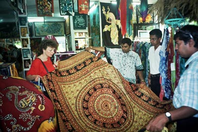W przeszłości zwozili je do niej kupcy z odległych stron, wędrujący na wielbłądach Wielkim Jedwabnym Szlakiem. I dopiero stamtąd, stąd ich nazwa, trafiały do Europy cz na Bliski Wschód. Zwiewne malowane, częściej barwione – z możliwością obejrzenia procesu ich produkcji, tkaniny i wyroby z batiku: chusty, szale, stroje, kupować można zwłaszcza w Indiach i na Sri Lance, chociaż także w innych krajach regionu.