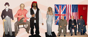 Brad Pitt, Charlie Chaplin, Robert de Niro, Pablo Picasso, Albert Einstein, Józef Stalin, Winston Churchill, Freddie Mercury, Elton John i David Copperfield to tylko niektóre z woskowych postaci, z którymi można zrobić sobie zdjęcie w Wilnie. Oprócz nich można podziwiać znanych i lubianych bohaterów filmowych – Shreka, Asteriksa i Obeliksa, najbardziej znane postaci z „Piratów z Karaibów” czy nawet „Gwiezdnych Wojen”. Ciekawscy mogą obejrzeć również woskowe wizerunki rodem z „Księgi Rekordów Guinnessa”: olbrzyma, najgrubszego mężczyzny czy najmniejszej kobiety na świecie. Osobną kategorię stanowią instalacje o tematyce religijnej – wśród nich można zobaczyć trójwymiarową kopię „Ostatniej Wieczerzy” Leonarda da Vinci oraz „Zdjęcia z Krzyża” Petera Paula Rubensa. Nie mogło zabraknąć również figury bardzo popularnego na Litwie Papieża-Polaka Jana Pawła II.