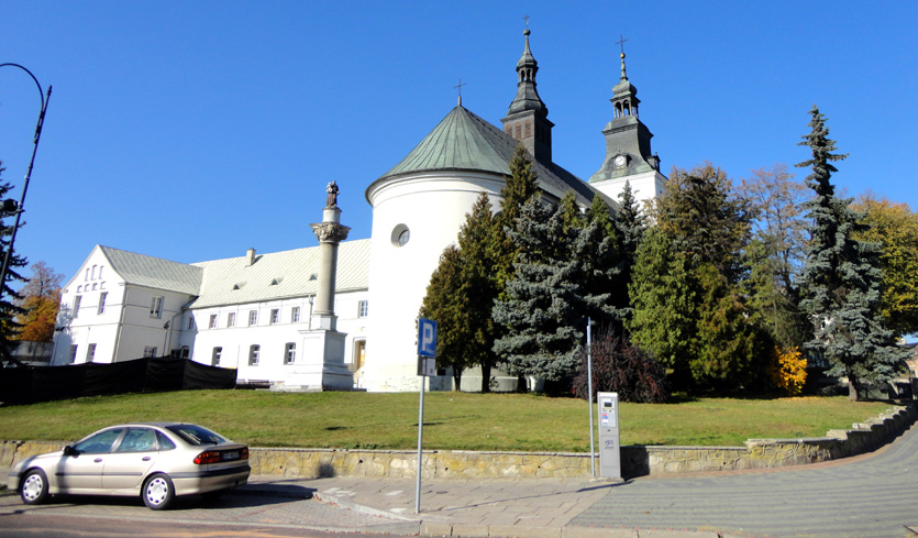 Cały zespół klasztorny otaczał mur z basztami. Jednonawowy kościół, z dwiema wieżami, pierwotnie pod wezwaniem Znalezienia Krzyża Świętego, został jednak częściowo spalony i zrujnowany, a wcześniej doszczętnie ograbiony przez Szwedów podczas „potopu”.