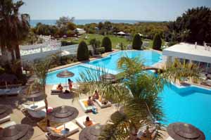 W hotelu tym jest oczywiście basen, kawałek łąki na której można uprawiać sporty bądź leżakować, przechodzącej w piaszczystą plażę. Mimo początku kwietnia, „obłożenie” miejsc okazało się bardzo wysokie. Głównie przez turystów z Niemiec i Rosji, korzystających dosyć licznie z kąpieli morskich.