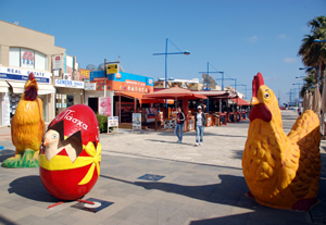 Wspomnę przy okazji, że na Cyprze, inaczej niż np. w Hiszpanii, Turcji i wielu innych krajach europejskich nad Morzem Śródziemnym, nie mówiąc już o Egipcie czy Tunezji, dominuje niska, jedno, rzadziej 2-3 piętrowa zabudowa wybrzeża. Hotele wyższe, 5-6 piętrowe są czymś wyjątkowym. Zapewnia to bardziej kameralny wypoczynek.