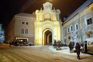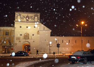 A w dosyć skąpym oświetleniu zdołałem dostrzec tylko pobliski kościół św. Teresy, Ostrą Bramę, klasztor bazylianów i wieże unickiego kościoła św. Trójcy oraz fronton Filharmonii. Zostawiłem więc rzeczy i pobiegłem „obwąchiwać” znajome kąty w prószącym drobnym śniegu. Najpierw, oczywiście, Ostrą Bramę ze słynnym obrazem Madonny bez Dzieciątka w niewielkiej, wąskiej kaplicy na jej górnym poziomie.